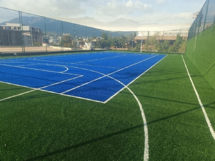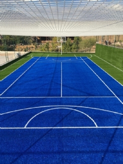 Şirketimiz, basketbol için özel üretilmiş sentetik çim halıları uygulamaktadır. Oyun alanı çizgileri halının üstüne dokunarak montajını yaptığımız basketbol halıları, standart top sıçrama ve hız normlarına uygun olarak üretilmektedir. Suni çimden yapılan basketbol halıları, düzgün ve ideal top sıçrama normlarına uygun oldukları için tercih edilir. Ayrıca bakım masraflarının olmaması da avantaj sağlar.