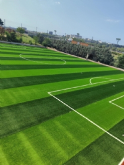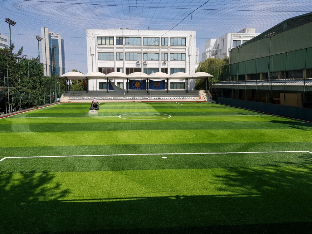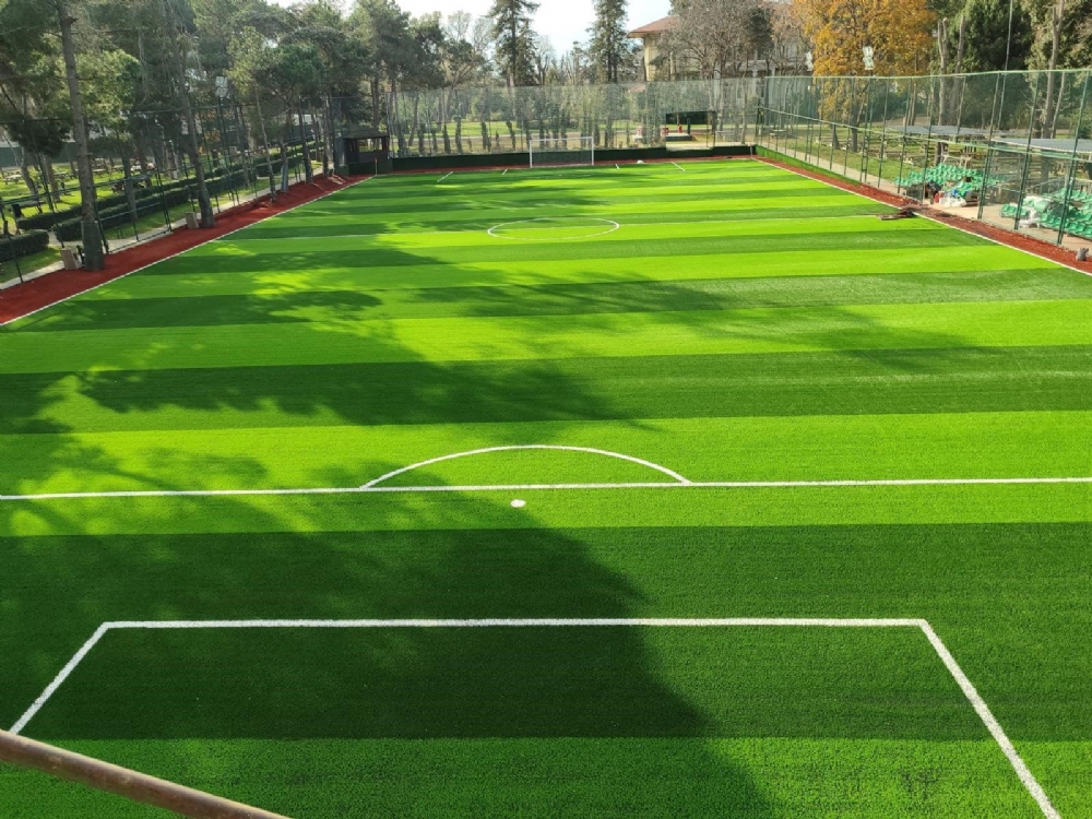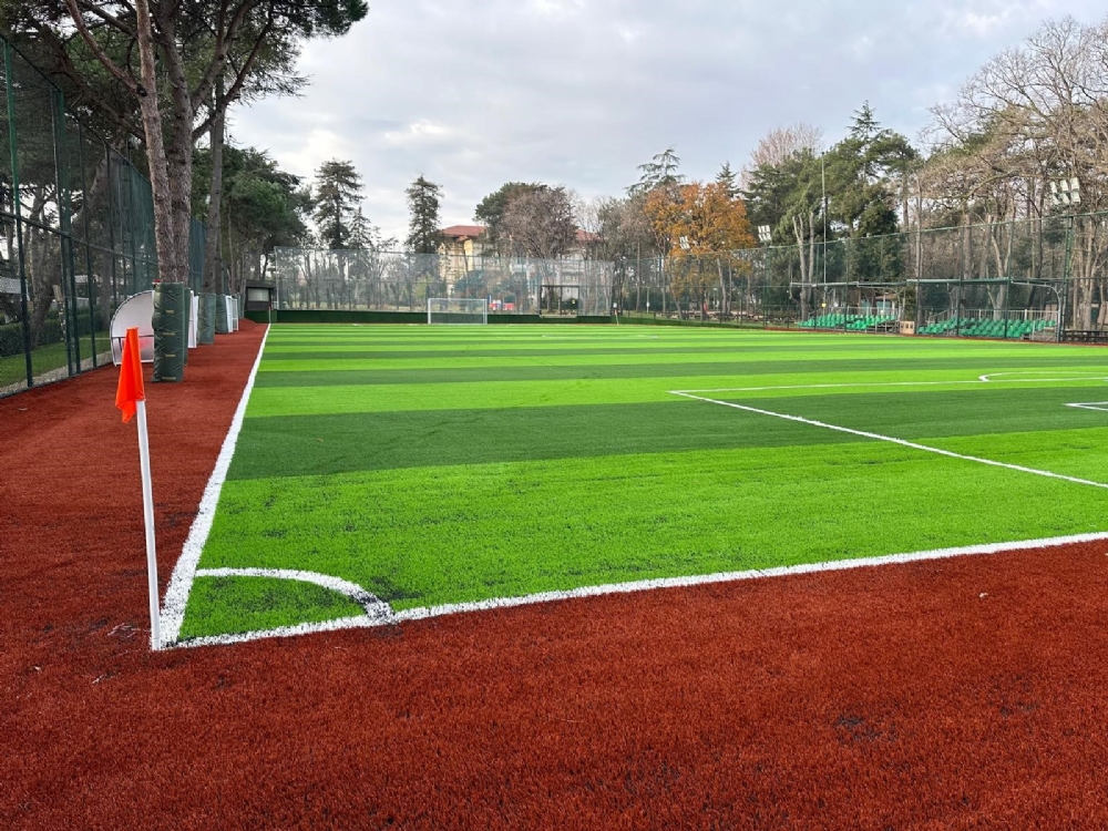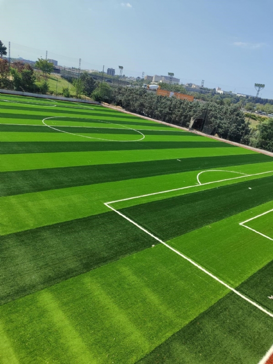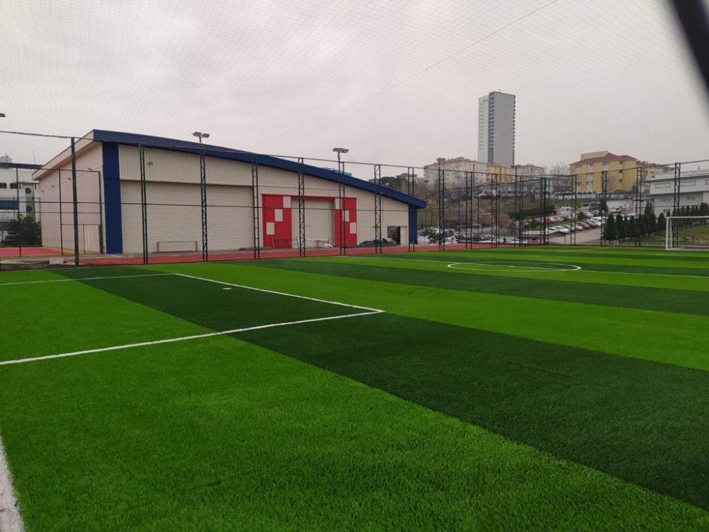 Zemin Kaplaması: Kot ayarları yapılmış zemin üzerine jeotekstil keçe kumaş serilerek üzerine suni çim halı serilecek,halının ek yerleri ve çizgileri ( kale arkası ve taç çizgileri özel dokumalı ) helmetin bezi ve çift kompenatlı yapıştırıcılar yardımı ile yapıştırılacaktır.Halı içerisine silis kuru kum dolgusu ve üzerine sbr granül kauçuk dolgusu homojen bir şekilde yapılarak saha futbol oynamaya müsait bir şekilde teslim edilecektir.Halılarımız, Sanayi Bakanlığı onaylı ve garantilidir.
